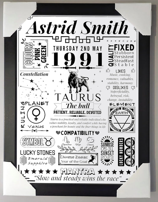 Personalized Zodiac Sign Print | 43 Birth Date Facts | Premium A4 Art