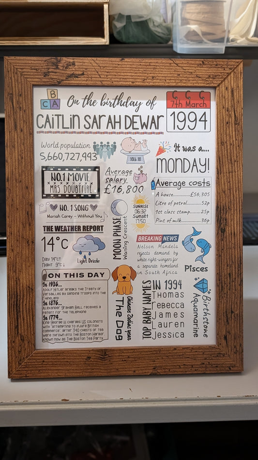 Personalised Birthday History Print - UK Edition | Custom Birth Date Facts Gift
