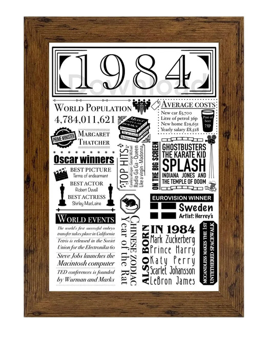 1984 Birthday Facts Digital Print | 41st Birthday Gift | UK Milestone