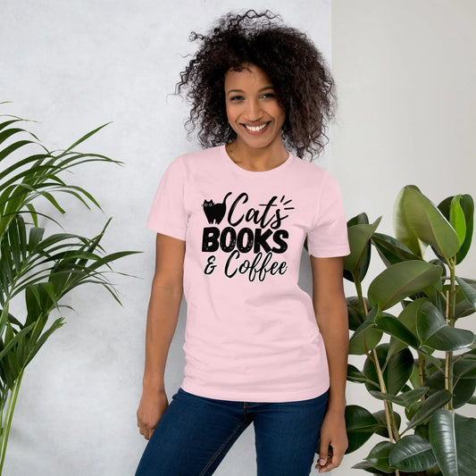 Cats books and coffee T-shirt | Cat Lovers Gift | Premium tee