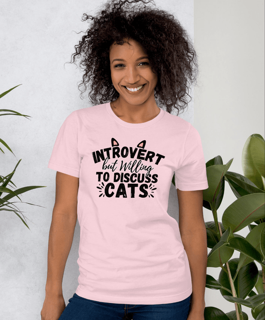 Funny Cat T-shirt | Introvert but willing to discuss cats | Premium