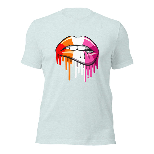 Lesbian Pride Lip Bite T-Shirt | Sapphic Flag Design | Premium Eco Tee