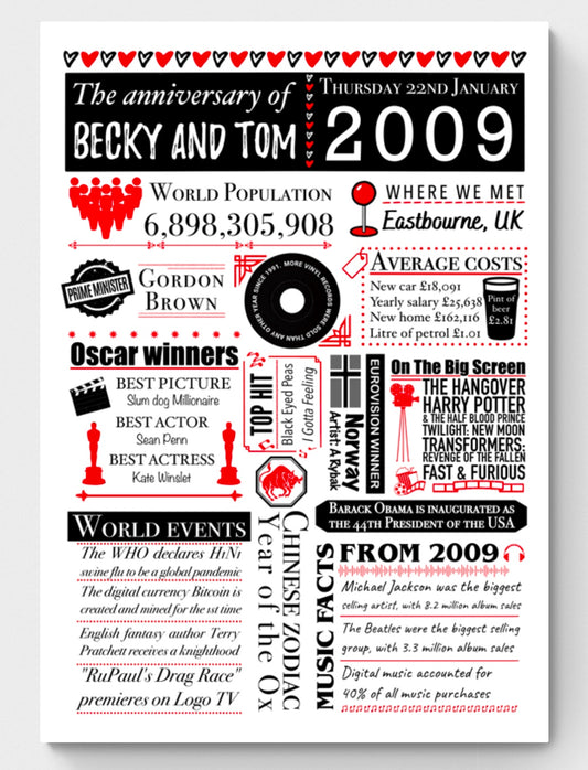 Personalised Anniversary Facts Print | Custom Date Art | UK Edition
