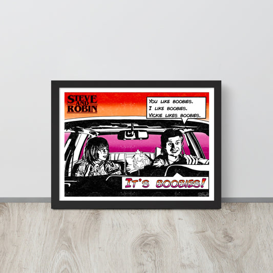 Steve & Robin Stranger Things Car Scene Art Print by JHollyArt