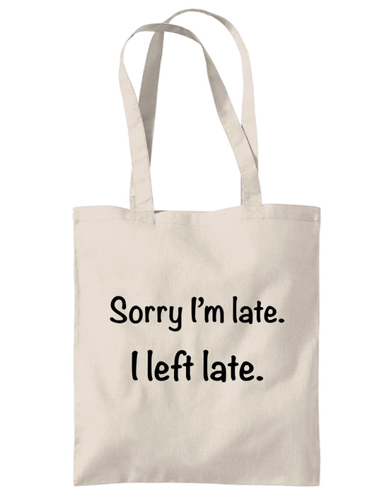Sorry I'm Late I Left Late Funny Quote Canvas Tote Bag | Eco-Friendly Reusable Bags
