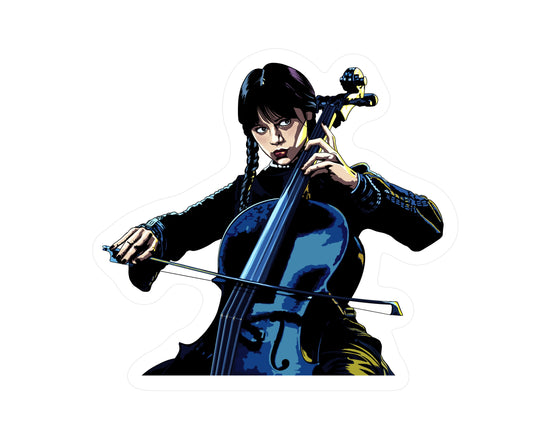 Wednesday Cello Scene Sticker | Paint it Black | JHollyArt Fan Art
