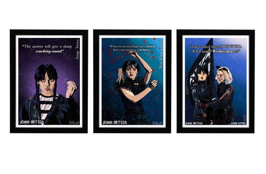 Wednesday Portrait Art Collection | JHollyArt Three Print Set | Fan Art